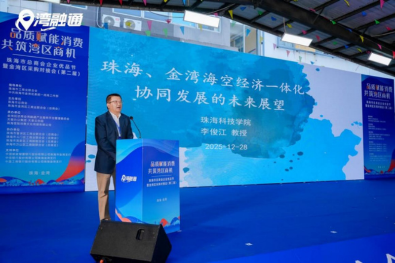 活动开幕式现场,李俊江院长围绕《珠海、金湾海空经济一体化协同发展的未来展望》为题作主题分享,结合区域产业发展趋势深入剖析行业机遇,为企业发展与人才需求提供前沿视角,全面展示学校育人成果与学术实力,深化政校企三方沟通共识。